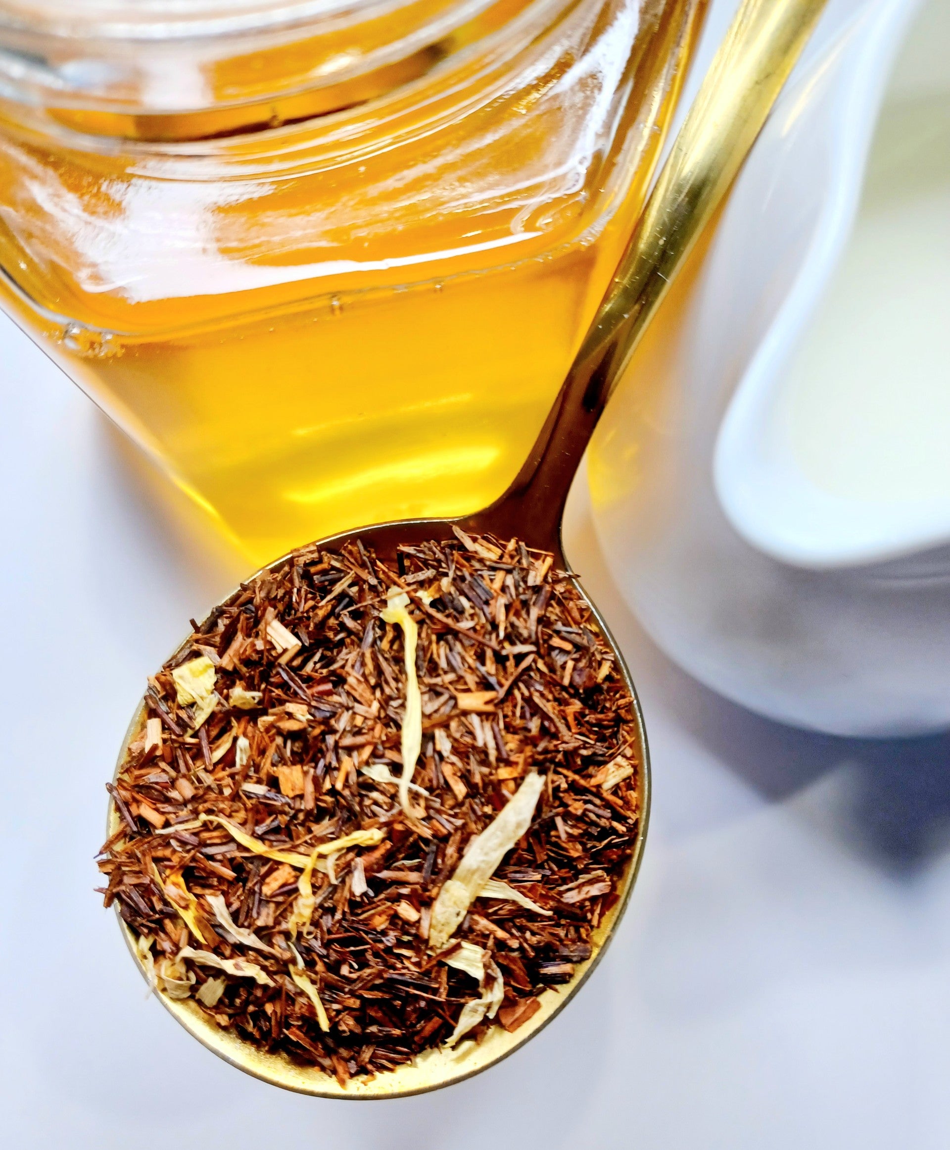 This delightful blend combines the soothing qualities of rooibos with warm vanilla and creamy caramel, reminiscent of milk and honey.